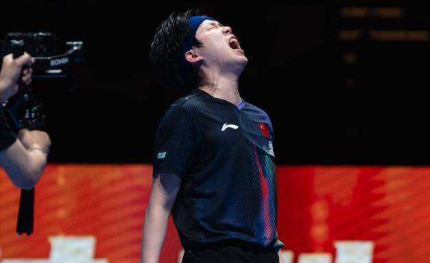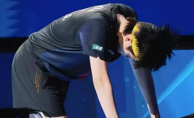 赢下后他甚至没有庆祝,只是撑着球台,低着头大口喘气。