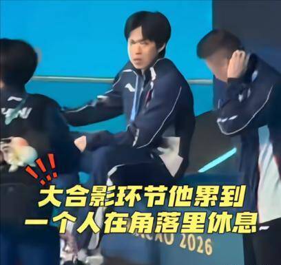 全场沉浸在夺冠的喜悦中,他却独自坐在角落大口喘着粗气。